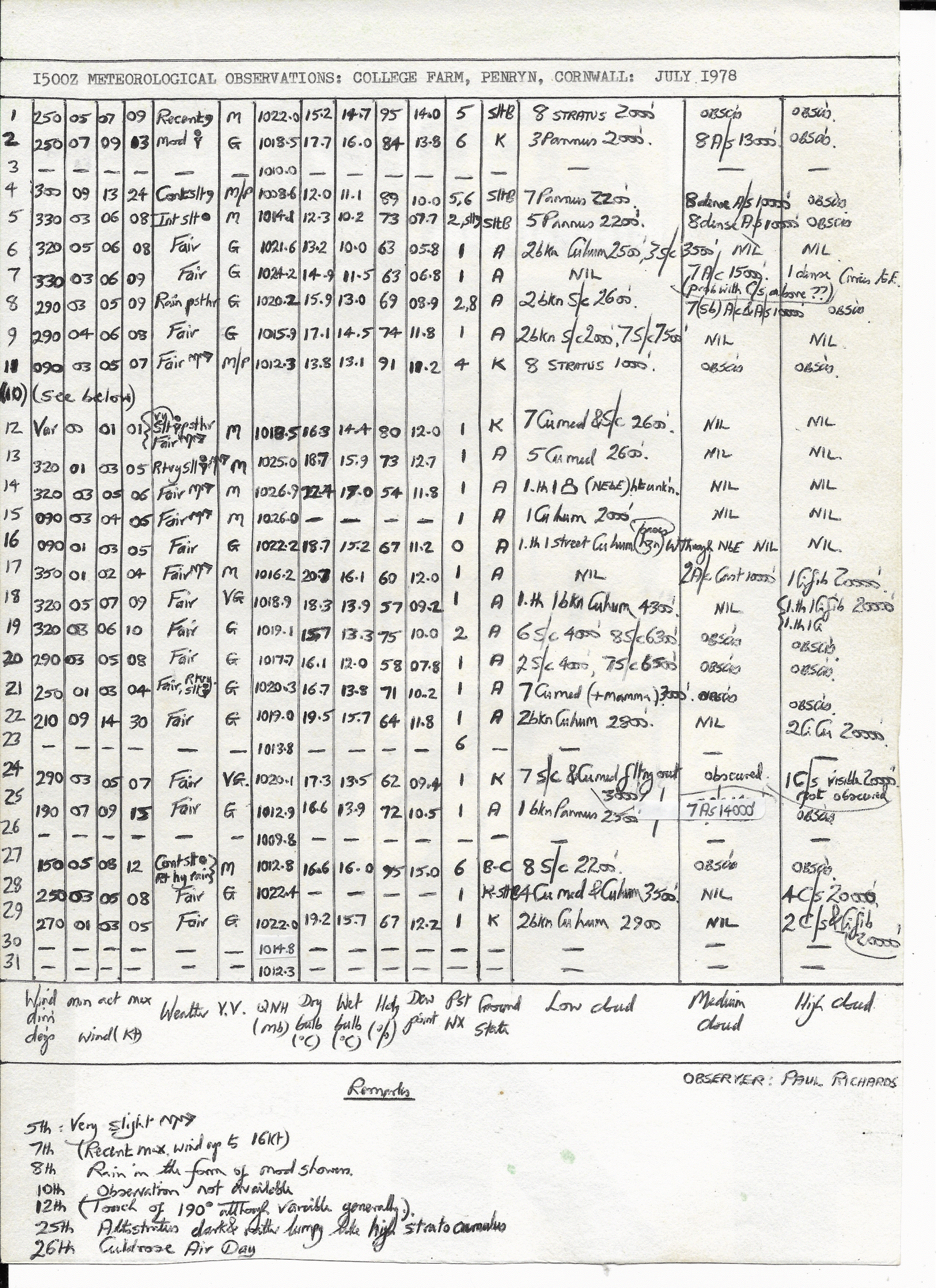July 1978: 1500Z Obs
