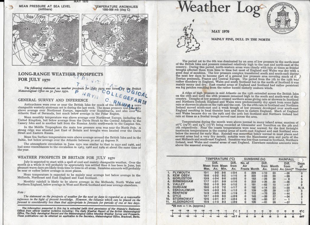 May 1970: Weather Log Monthly Summary & Prospects