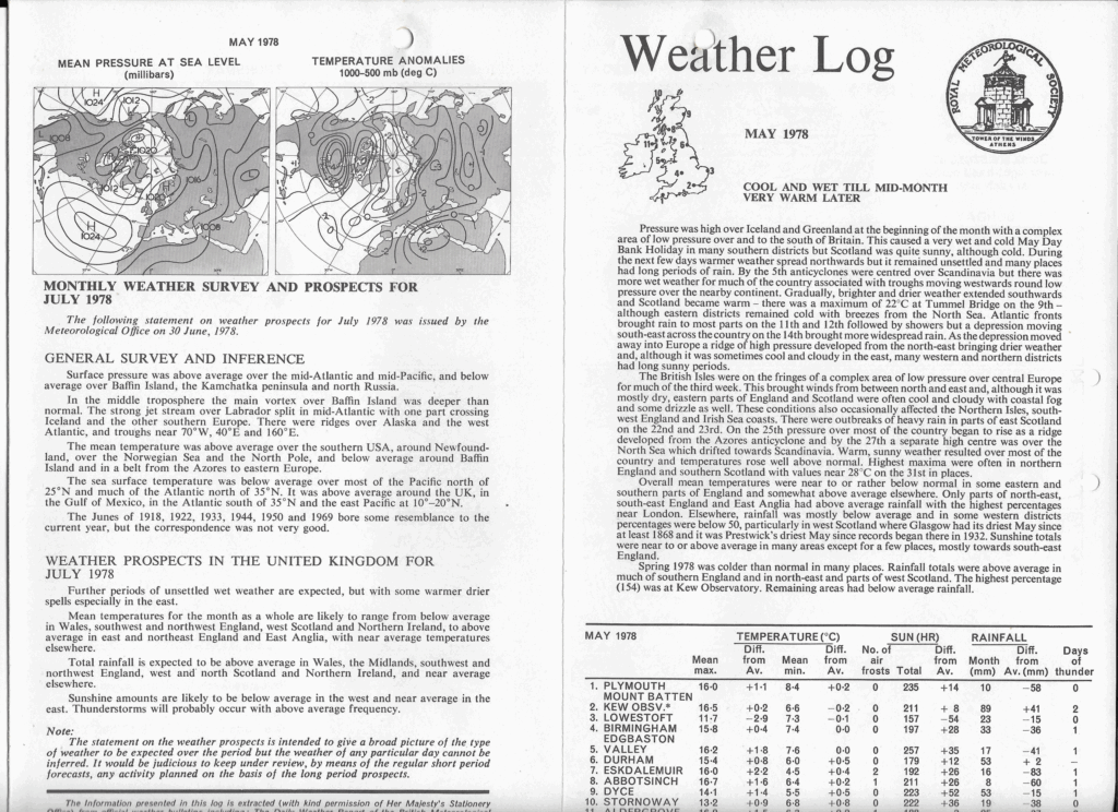 May 1978: Weather Log Monthly Summary & Prospects