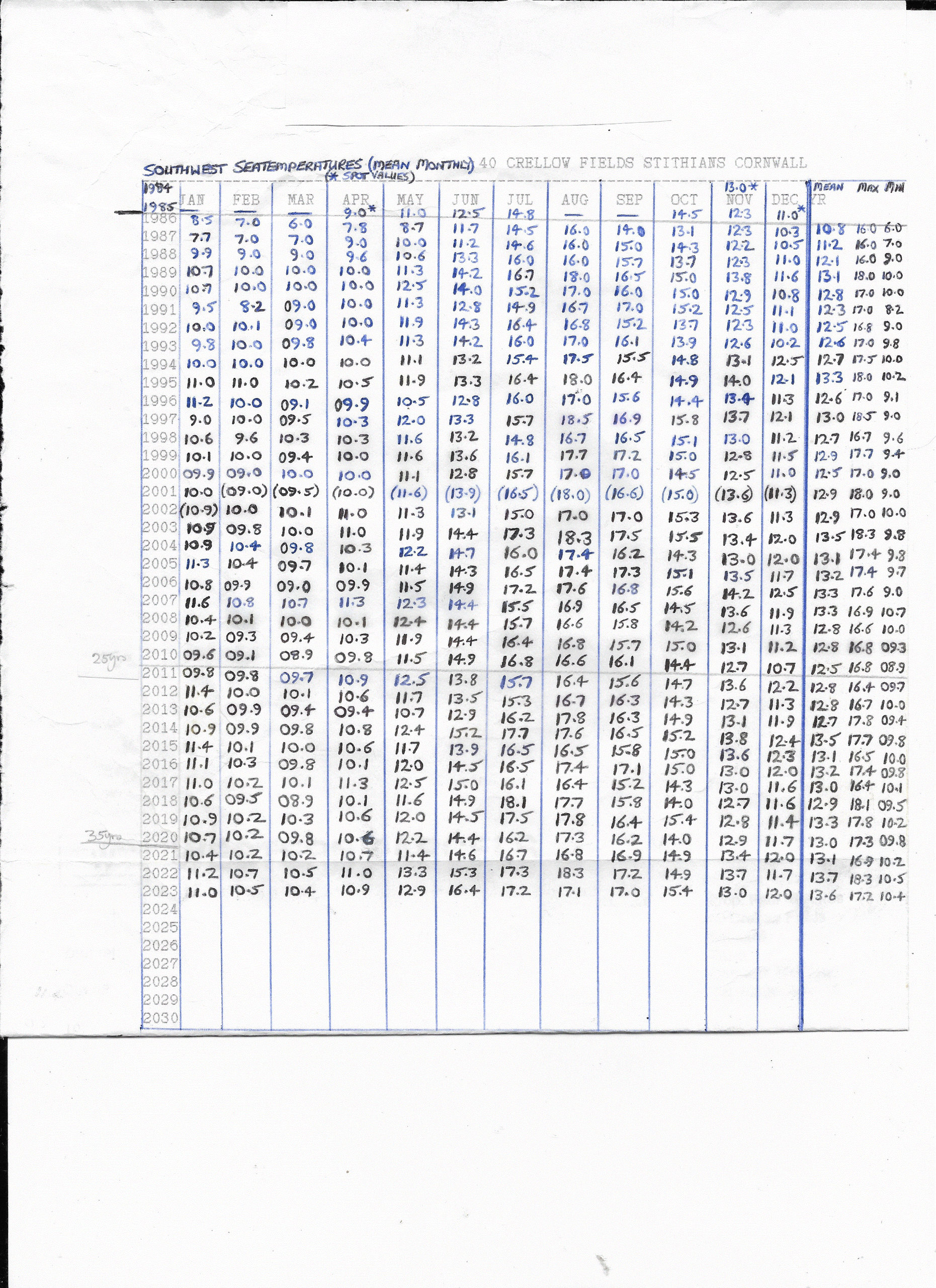 Mean Monthly Southwest Sea Temperatures 1986-2023
