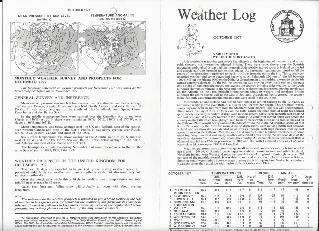 October 1977: Weather Log Monthly Summary & Prospects