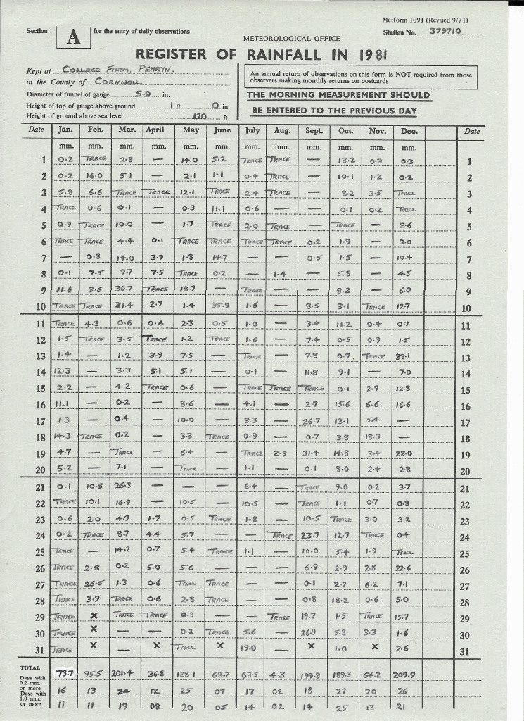 Penryn Annual Rainfall 1981