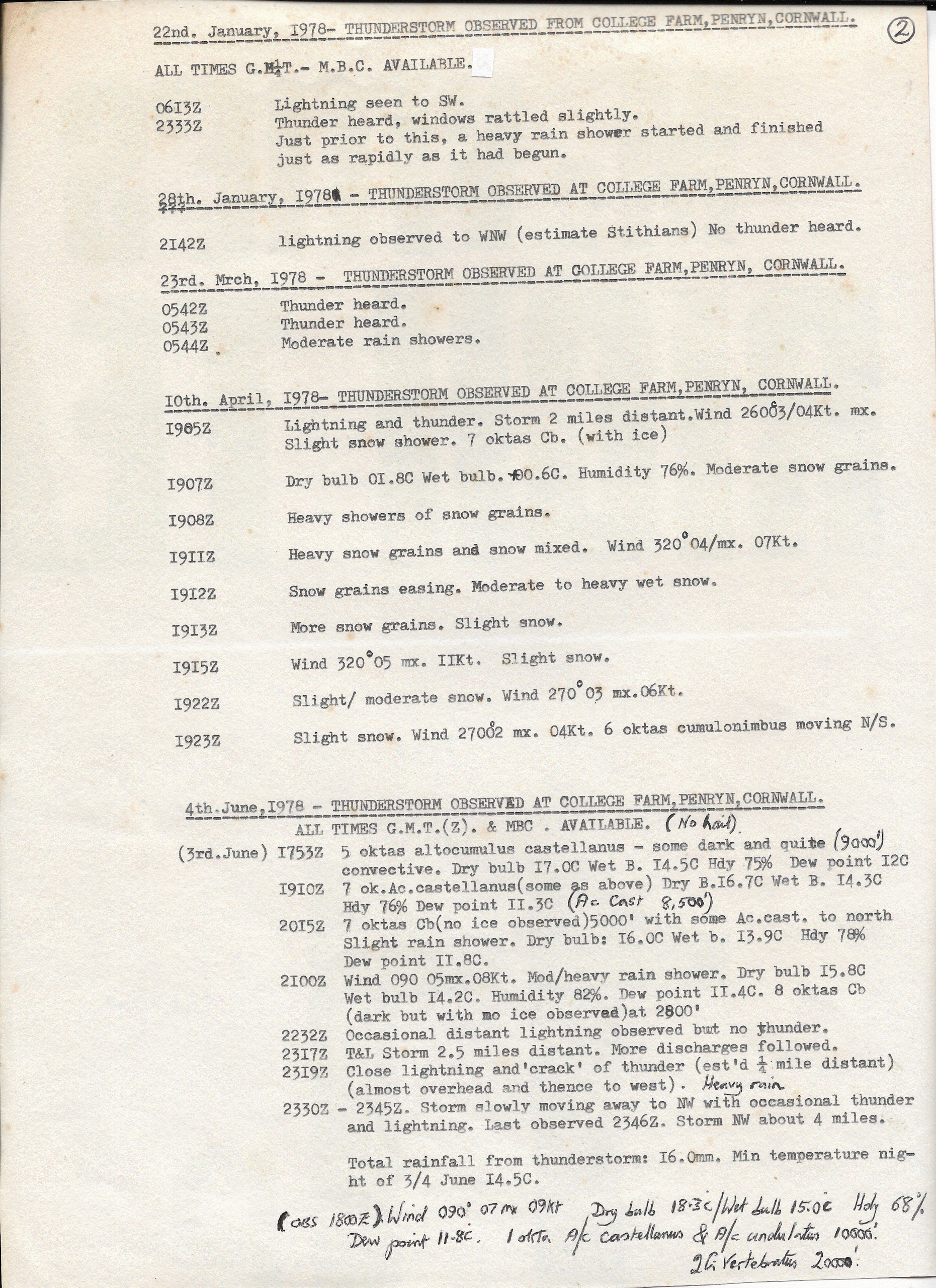 Penryn Thunderstorms: January 1978 – June 1978: