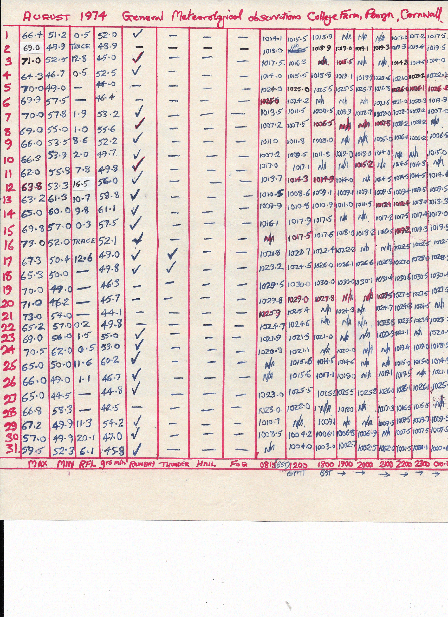 Penryn Weather Data: August 1974