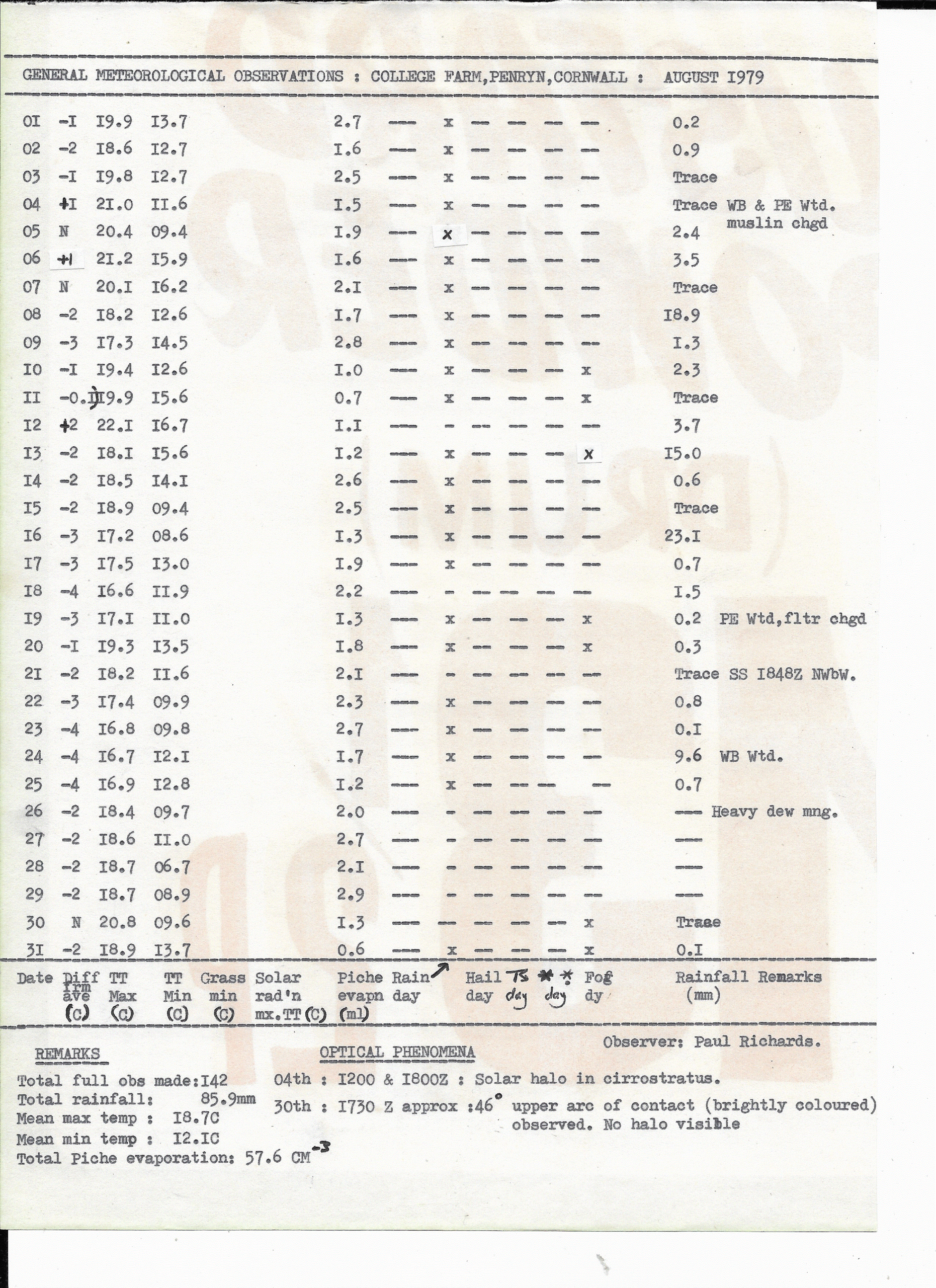 Penryn Weather Data: August 1979