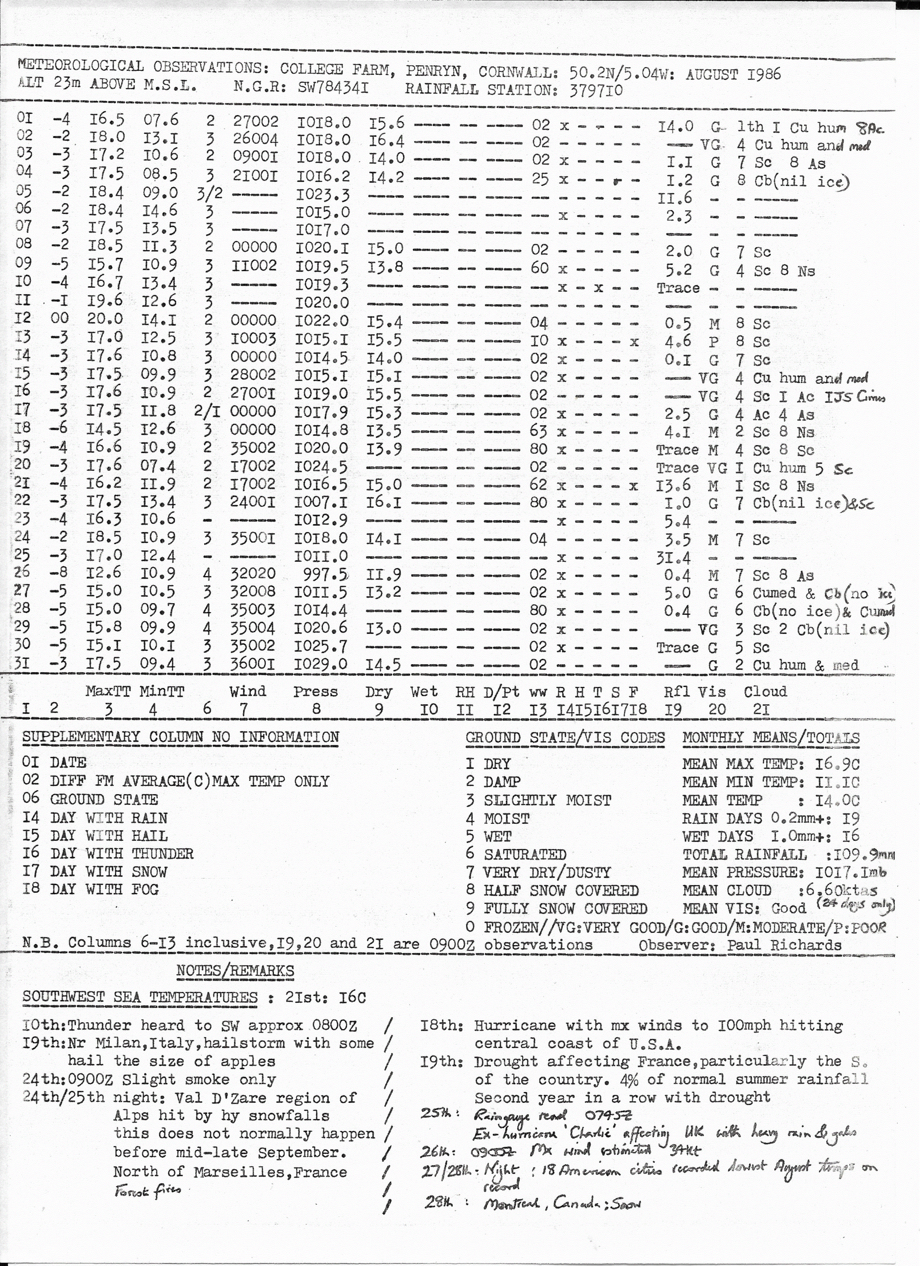 Penryn Weather Data: August 1986