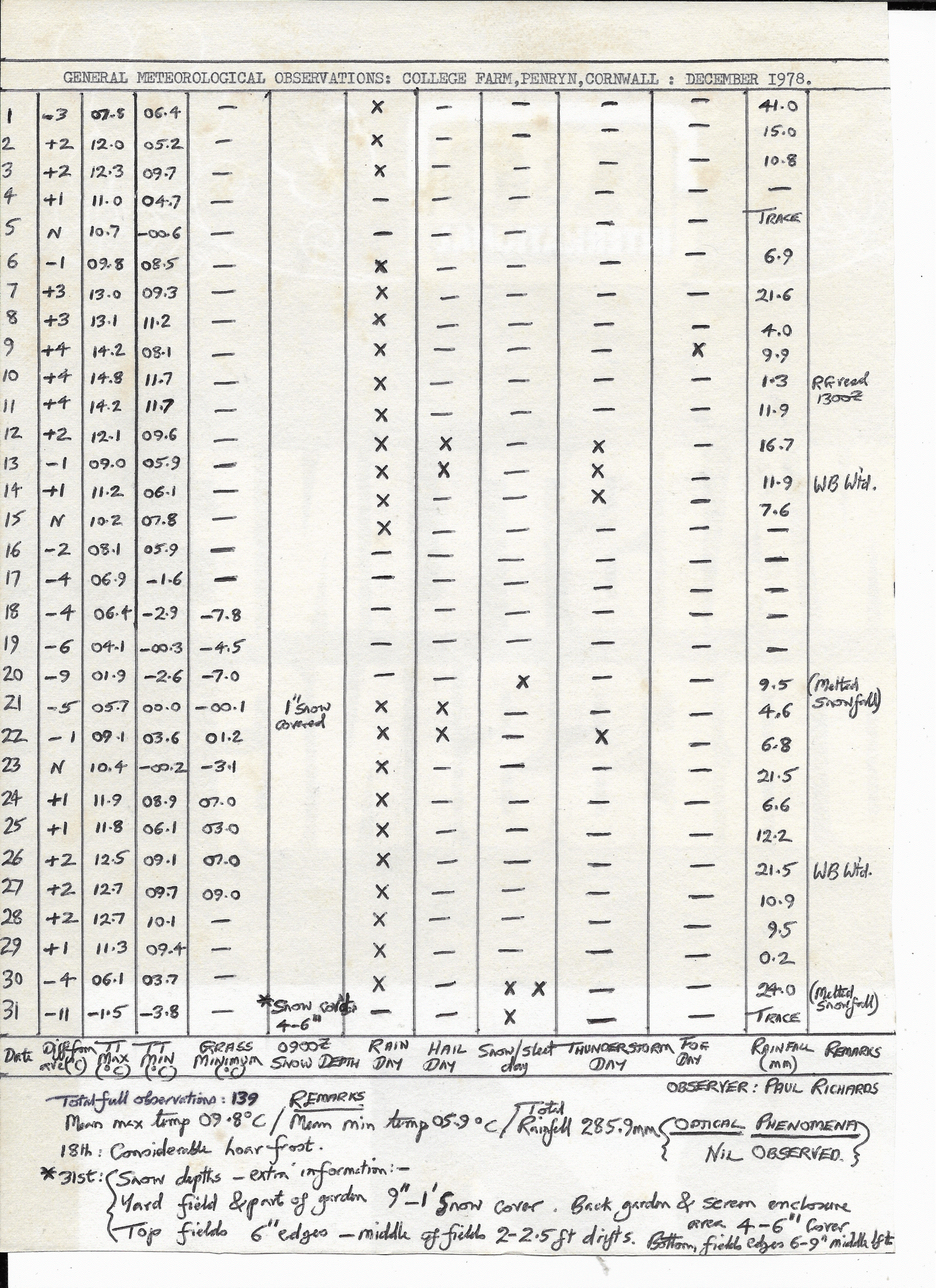 Penryn Weather Data: December 1978
