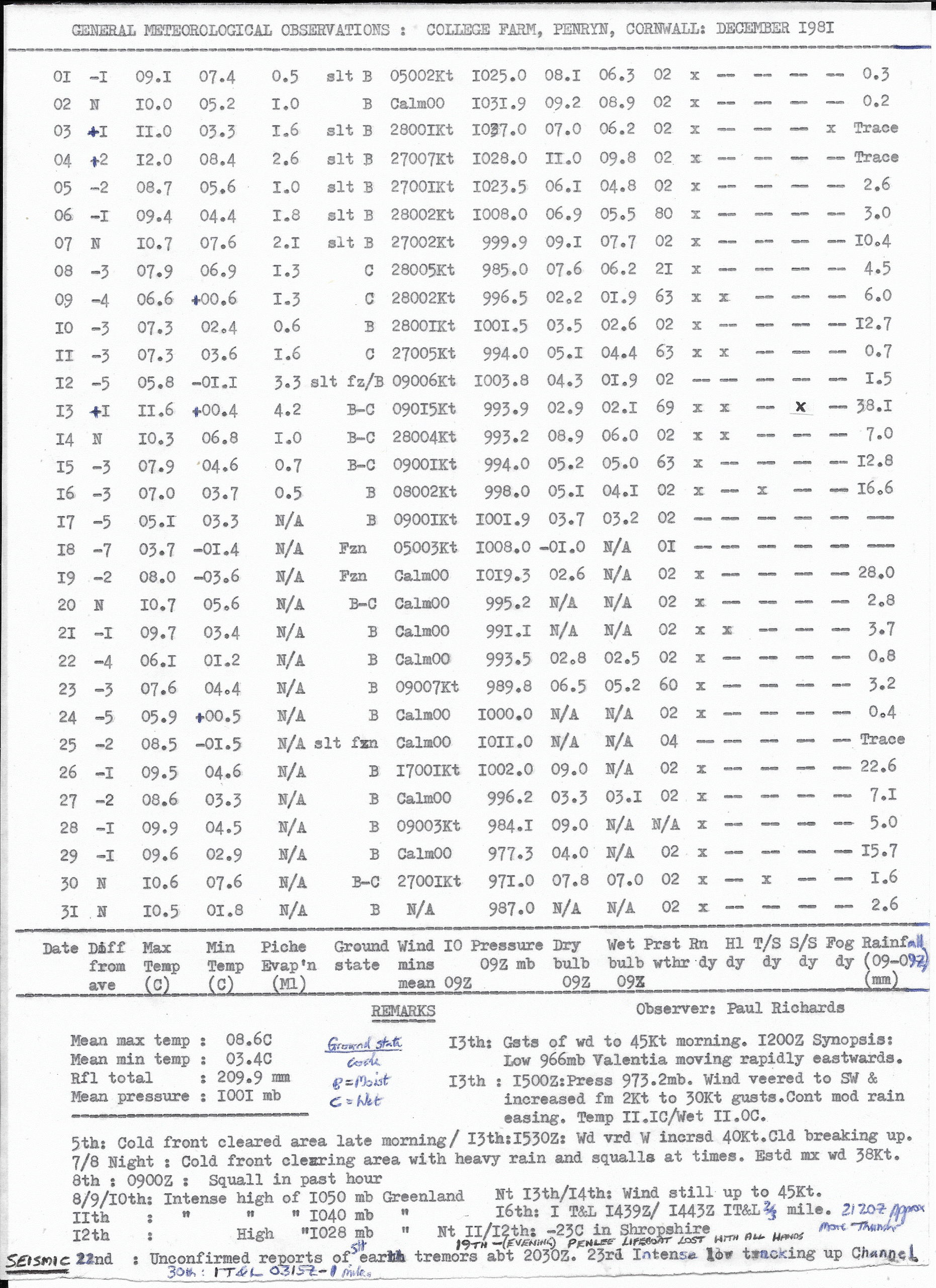 Penryn Weather Data: December 1981