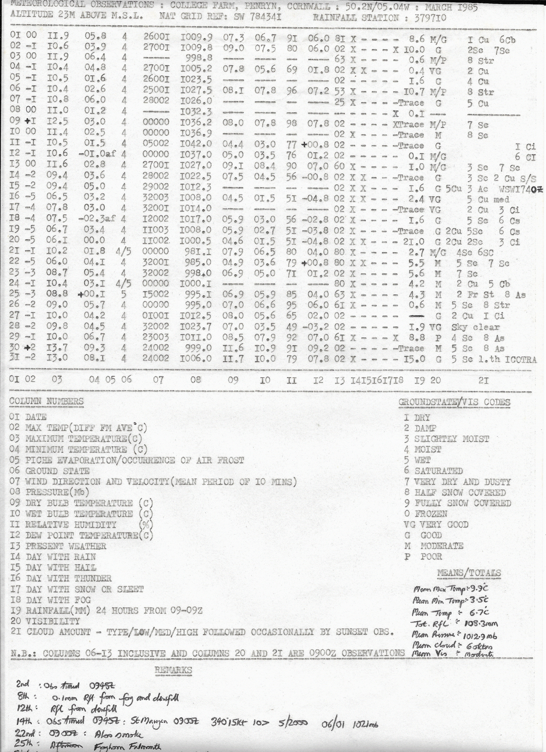 Penryn Weather Data: March 1985