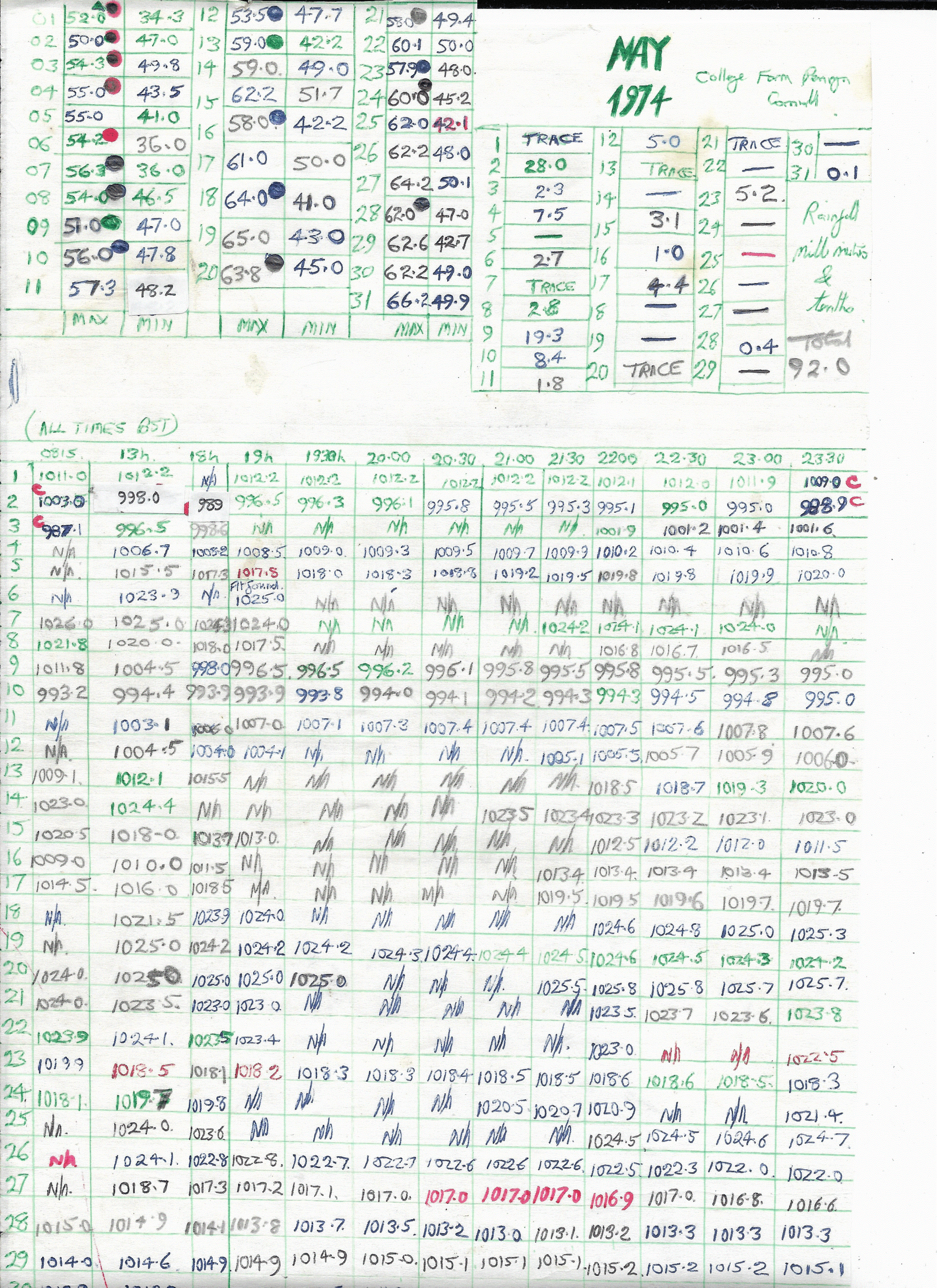 Penryn Weather Data: May 1974