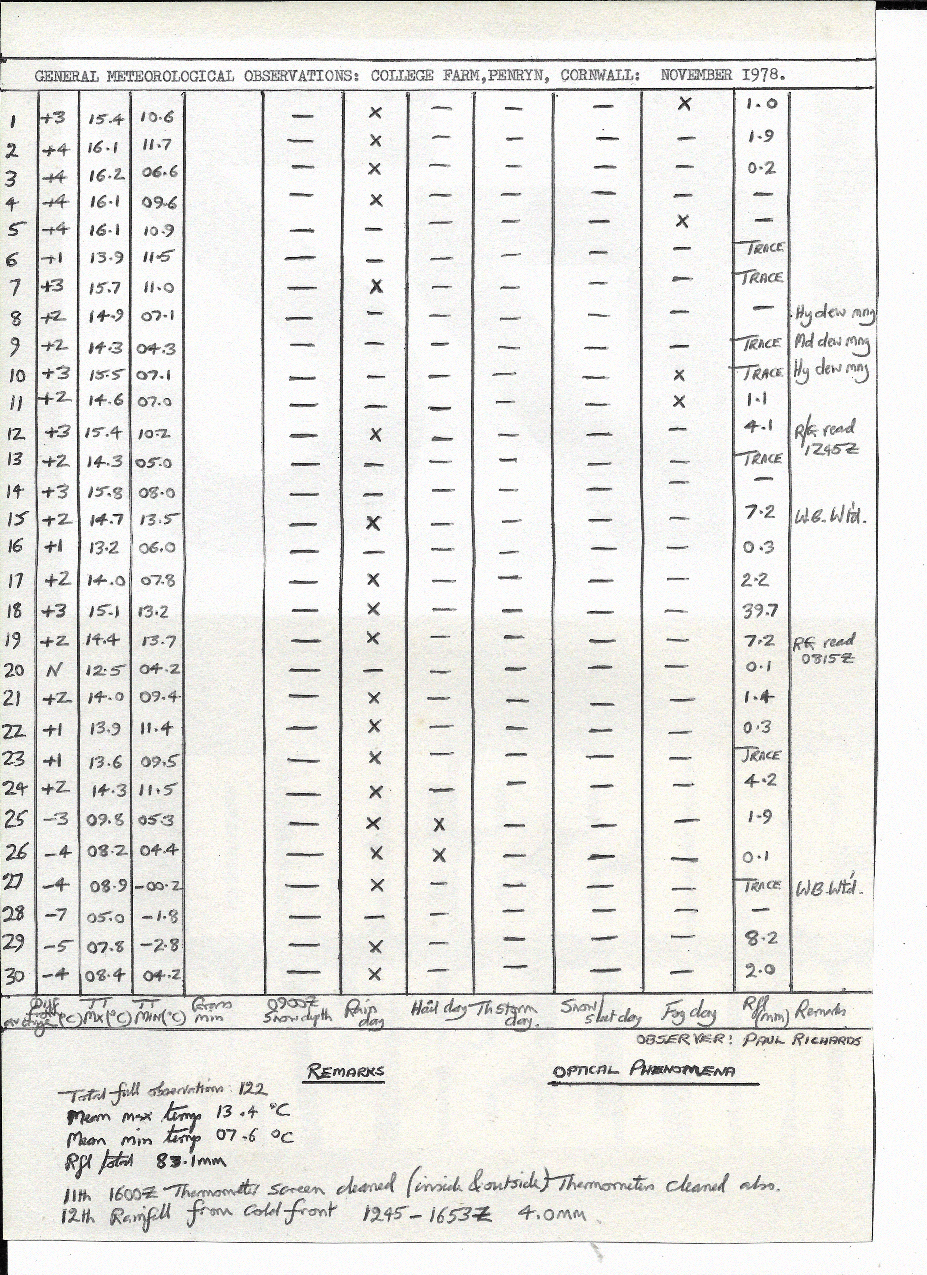 Penryn Weather Data: November 1978