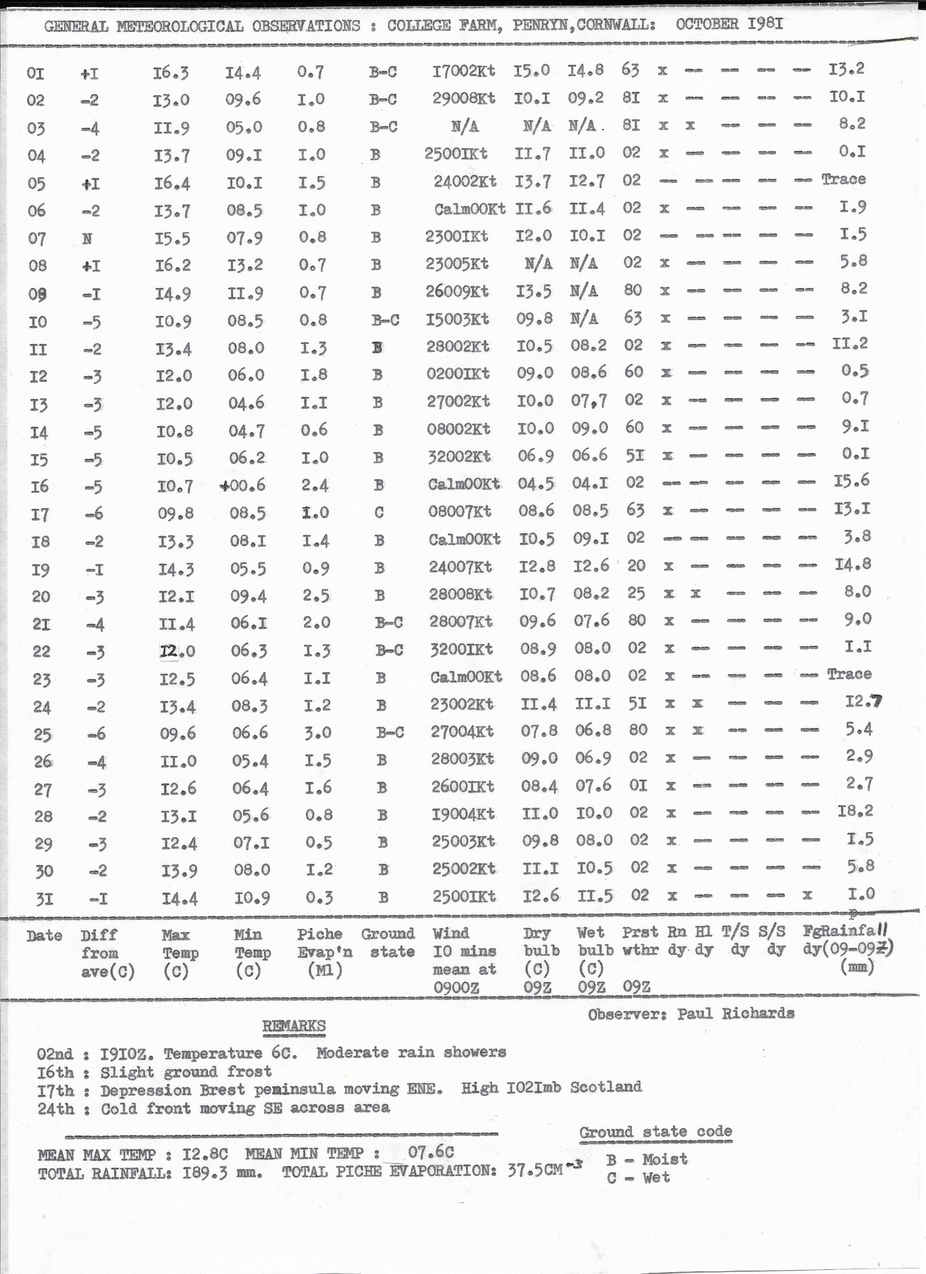 Penryn Weather Data: October 1981