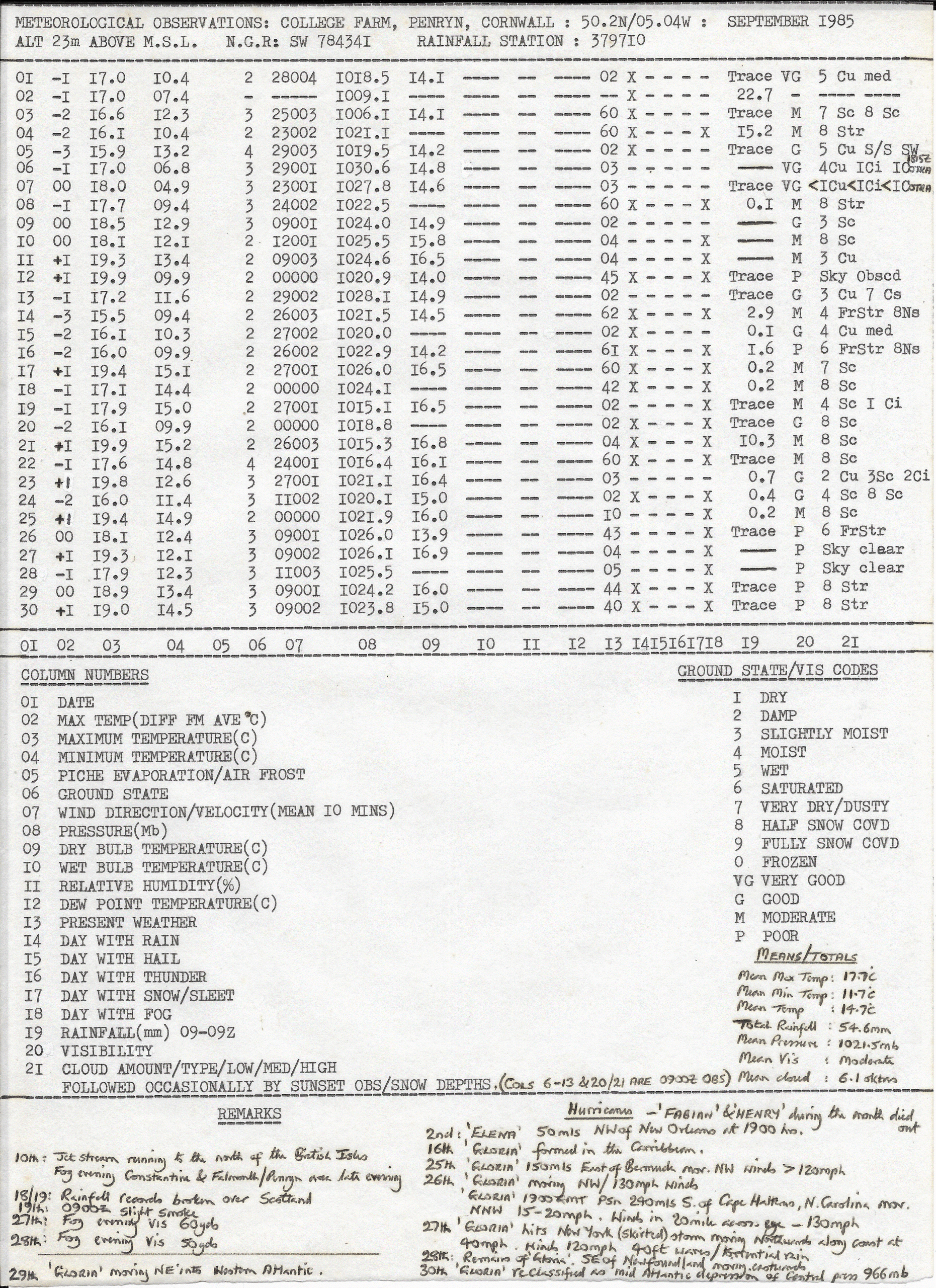 Penryn Weather Data: September 1985