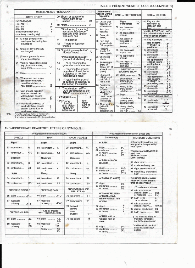 Present Weather Code (01-49) & Present Weather Code (50-99): Pages 14 & 15