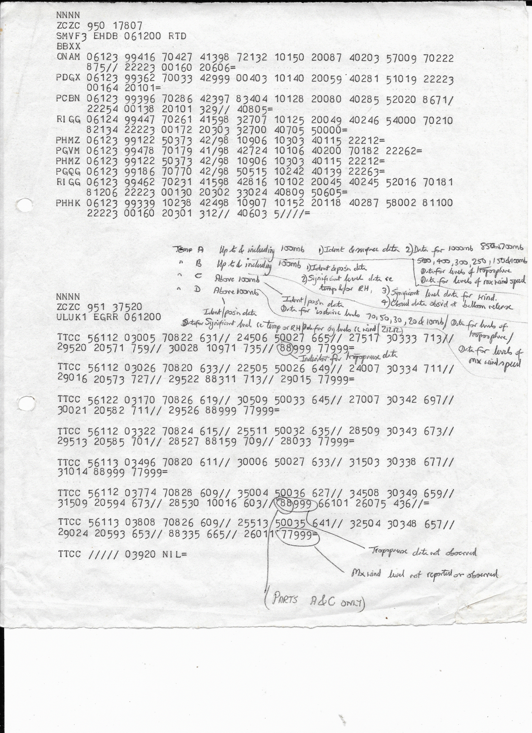 Radio-Teleprinter (RTTY) Explanatory Codes For Upper Air Data (Partial):