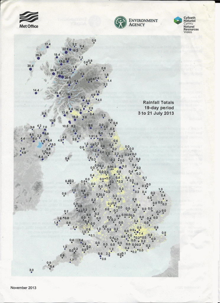 Rainfall Totals 19-day period 3 to 21 July 2013