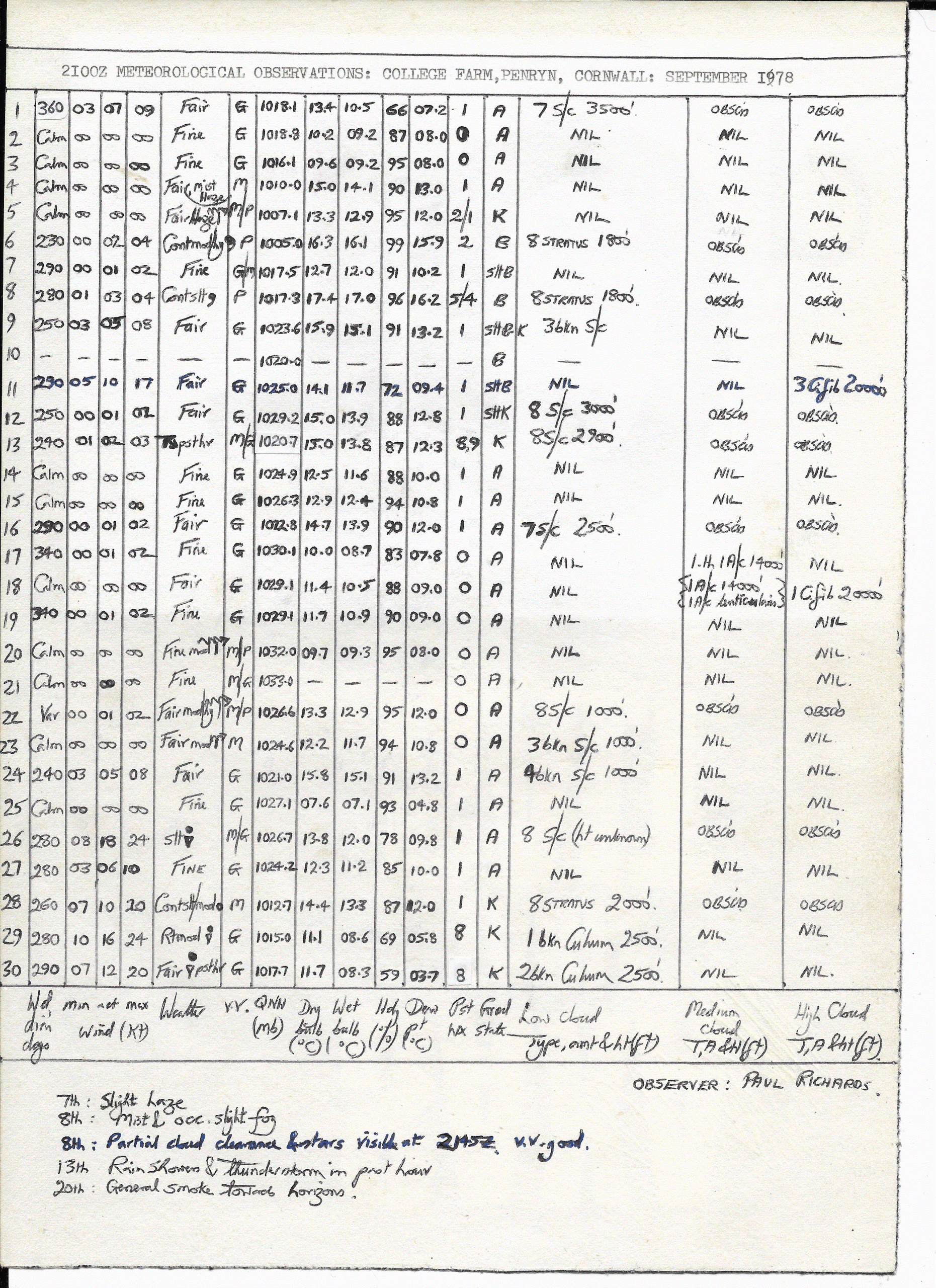 September 1978: 2100Z Obs