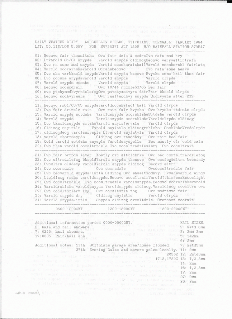 Stithians Daily Weather Diary: January 1994