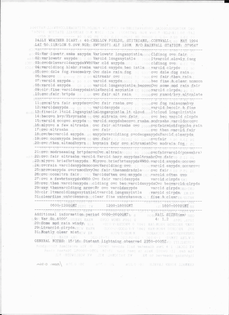 Stithians Daily Weather Diary: May 1994