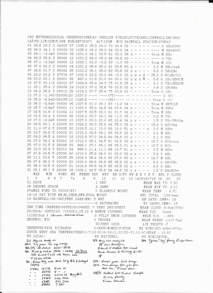 Stithians Weather Station, Stithians, Cornwall, UK