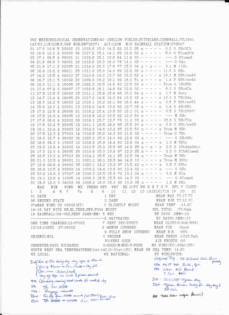 Stithians Weather Station, Stithians, Cornwall, UK