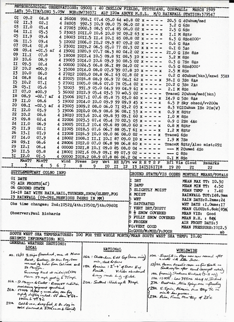 Stithians Weather Station, Stithians, Cornwall, UK