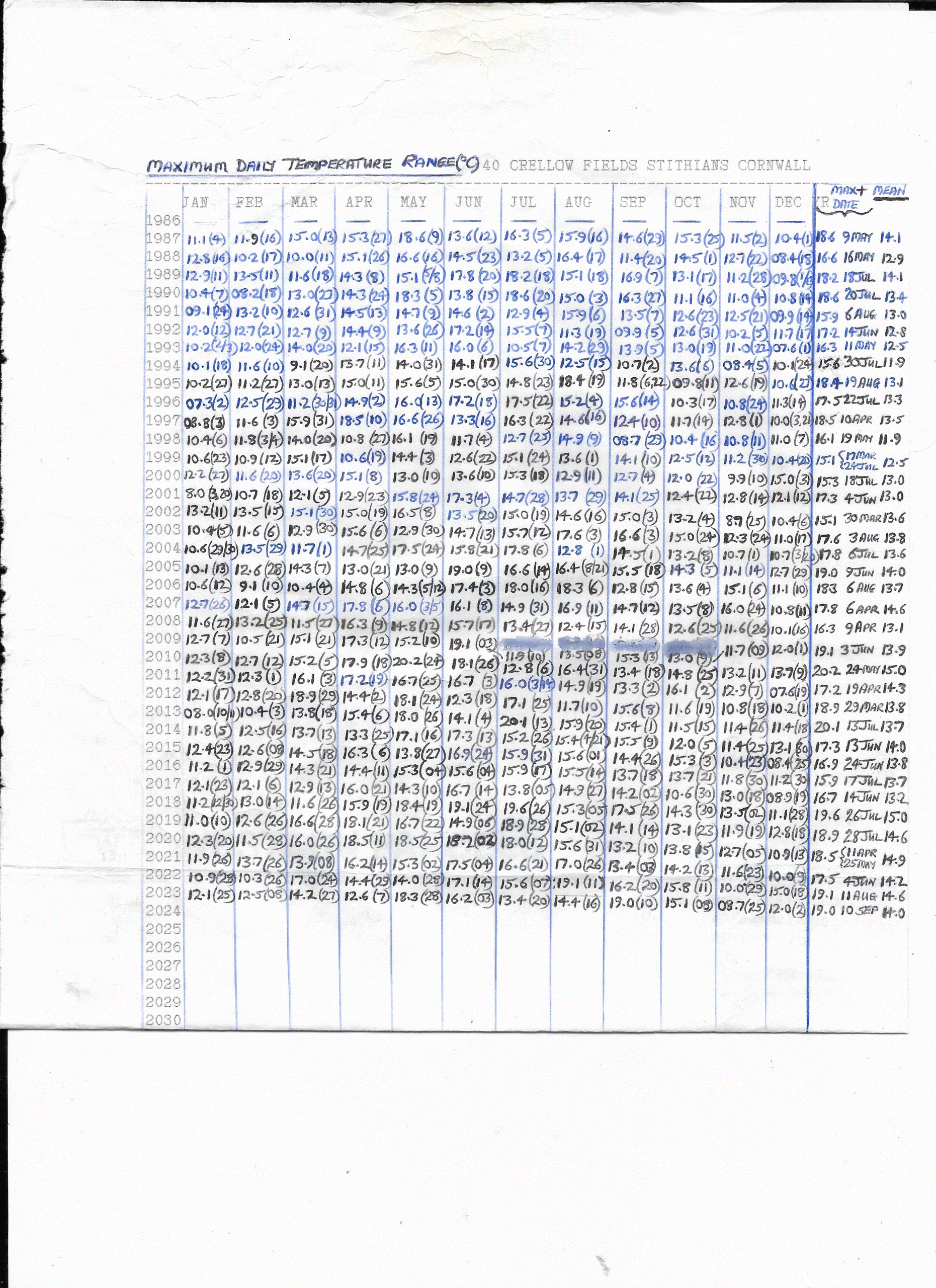 Stithians Monthly Maximum Daily Temperature Range 1987-2023