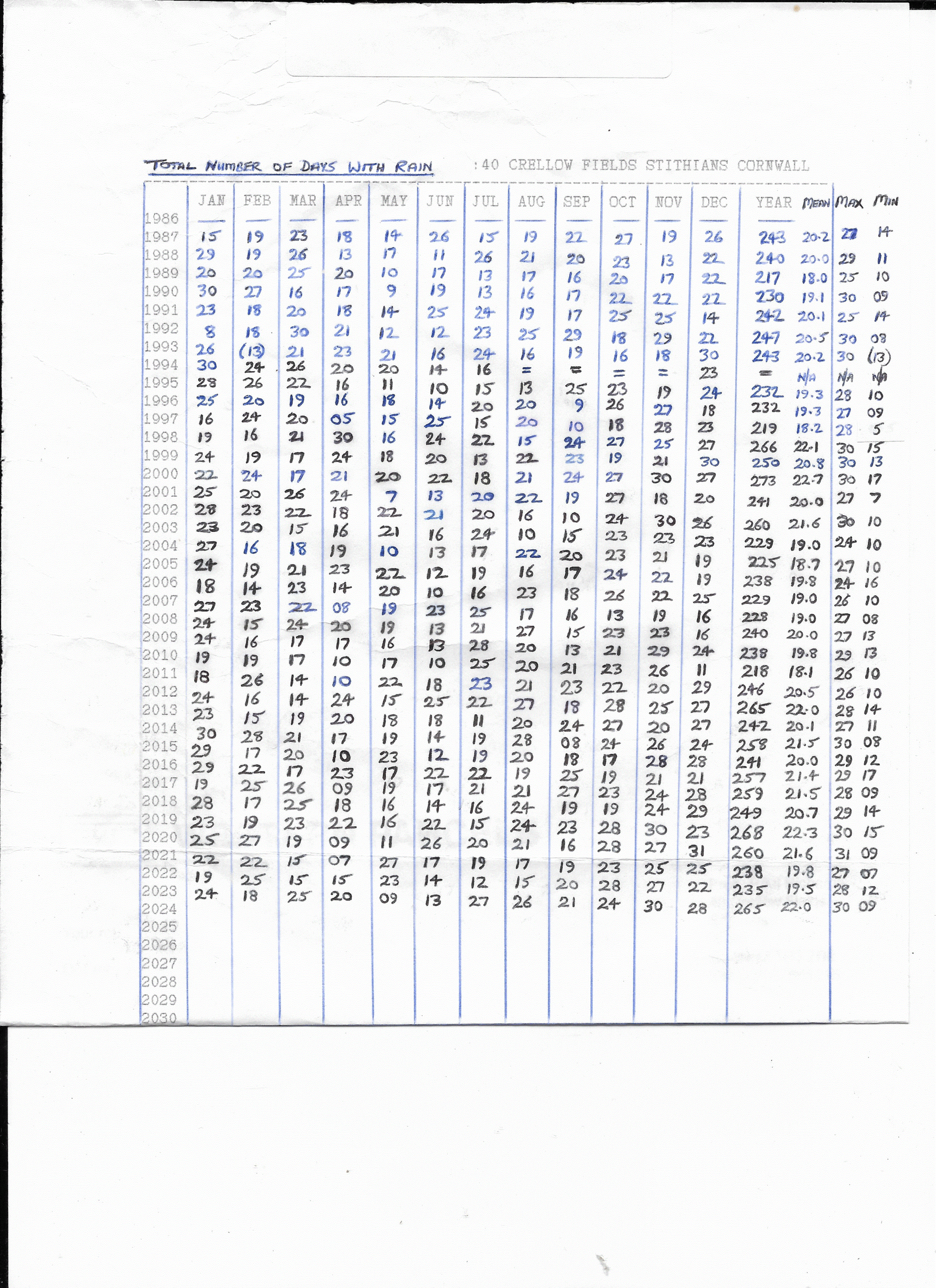 Stithians Monthly Total Number Of Days With Rain 1987-2023