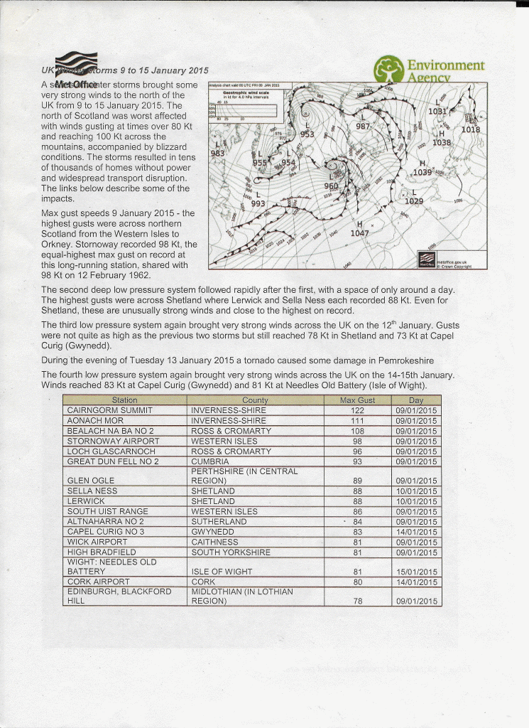 UK Winter Storms 9 to 15 January 2015